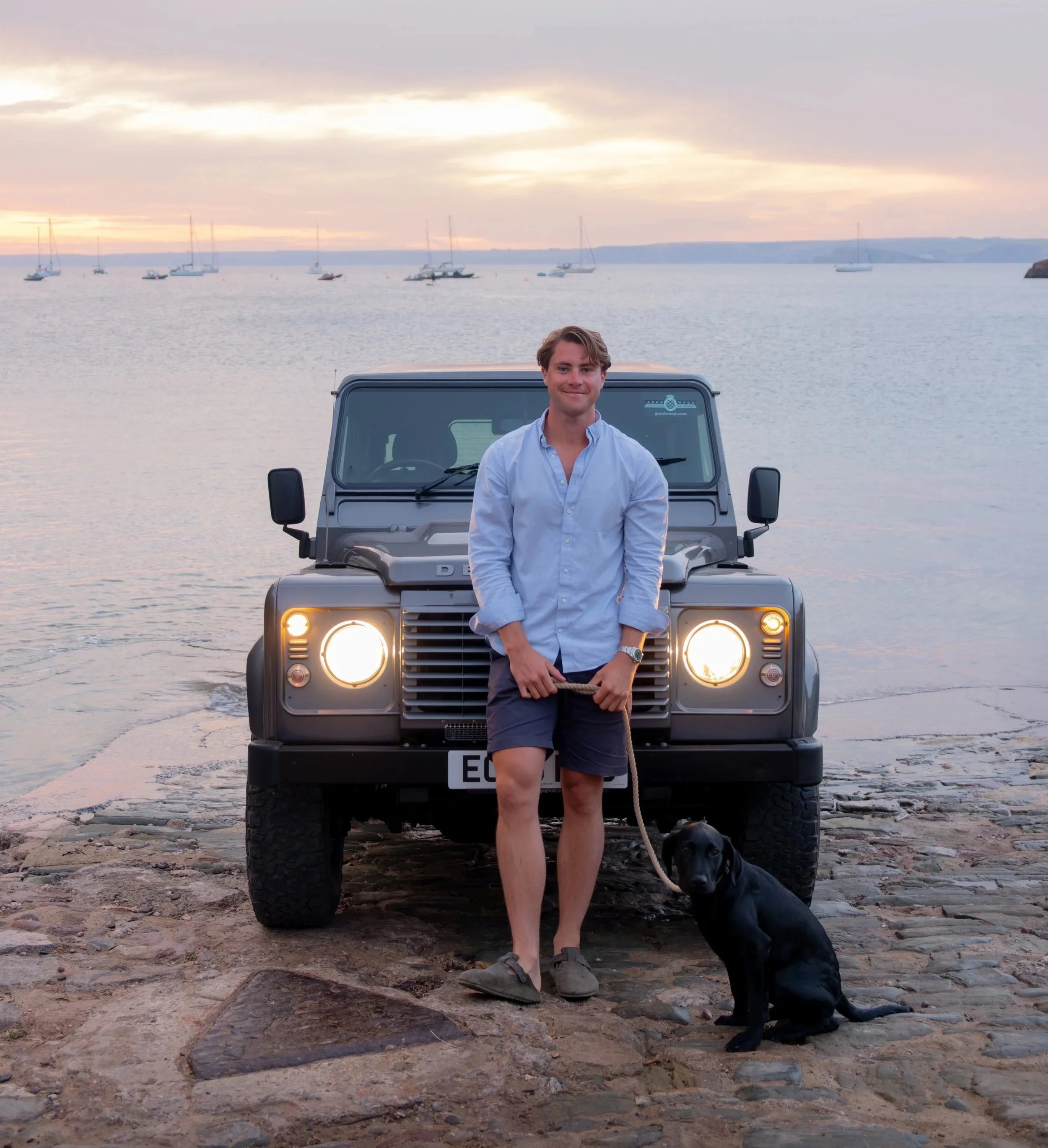 I am Jake and I am the founder of The Defender Society. Beside me is my (at the time) black lab puppy and behind me is our Corris Grey Defender 90 XS.
